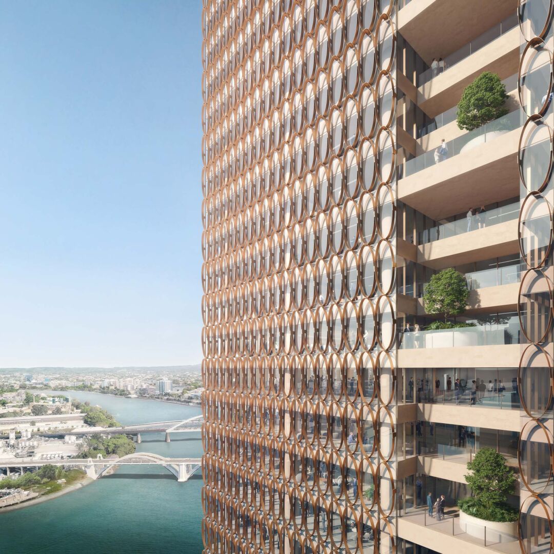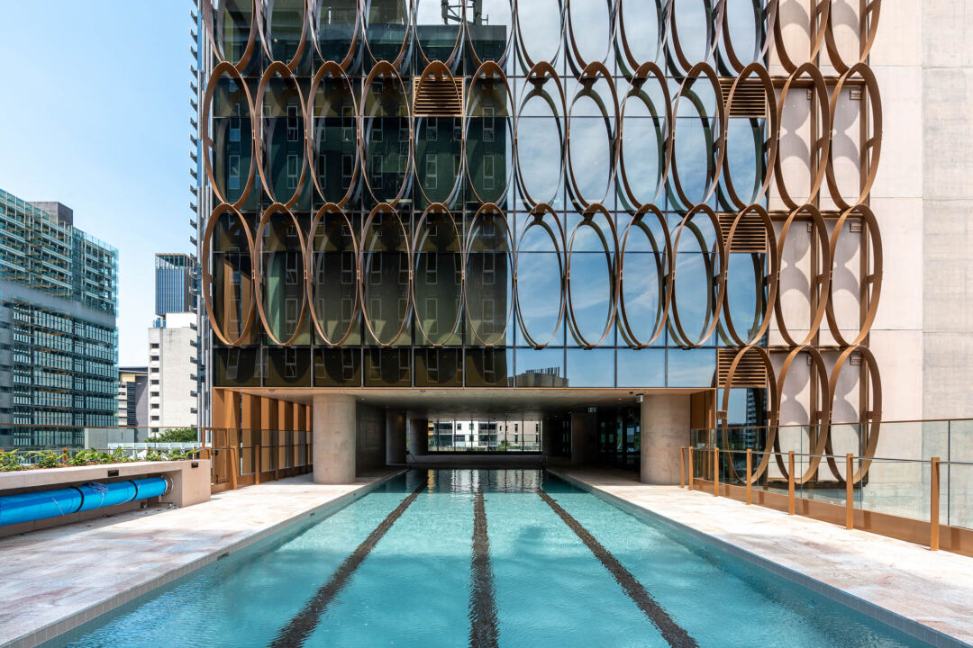 The tower targets a 6 Star Green Star rating and 5.5 Star NABERS Energy rating. A highly articulated façade manages solar exposure, while regenerative lifts, LED lighting and smart sensors support energy, water and waste efficiency. Biophilic design and panoramic river views enhance the experience, aligning with Brisbane City Council’s ‘Buildings That Breathe’ initiative.