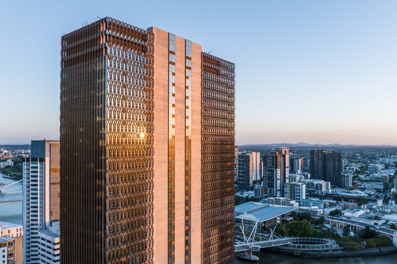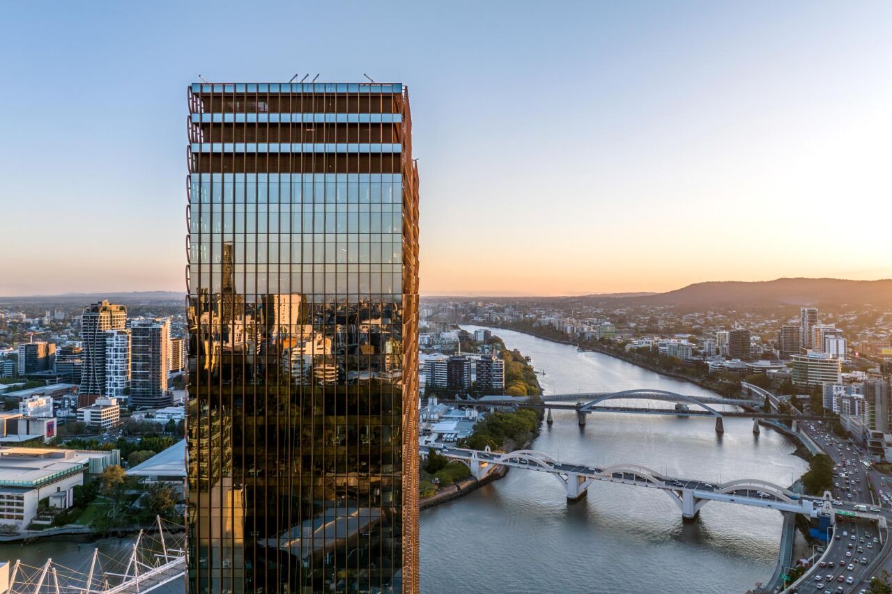 The premium‑grade tower in Brisbane’s Roma Street precinct provides 43,700 square metres of office net lettable area and blends architectural beauty with purpose and performance.