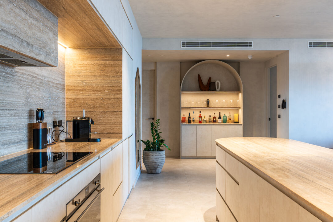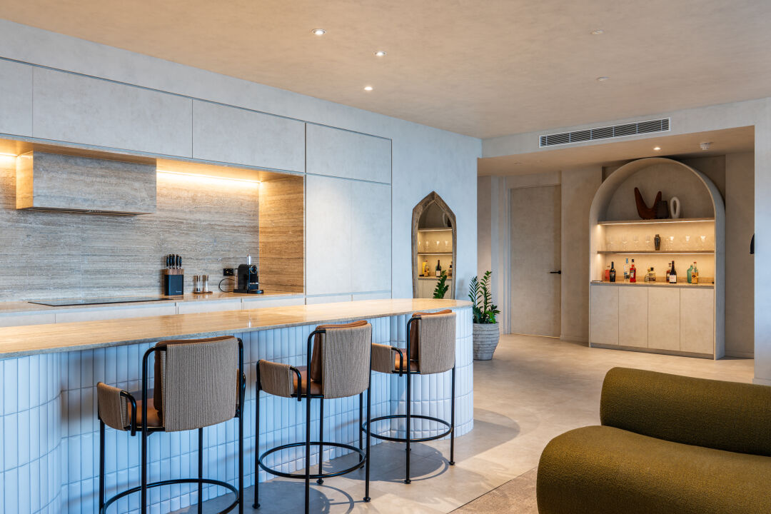 We worked closely with Studio Carter, DBI and Tamsin Johnson Interiors who designed the interiors. Our team delivered calm, contemporary spaces with finishes inspired by the coastline. Inside each home we installed appliances from Gaggenau, Miele and Liebherr, paired with natural stone, timber and wool carpets. Every detail reflects the level of quality expected from an international lifestyle brand.